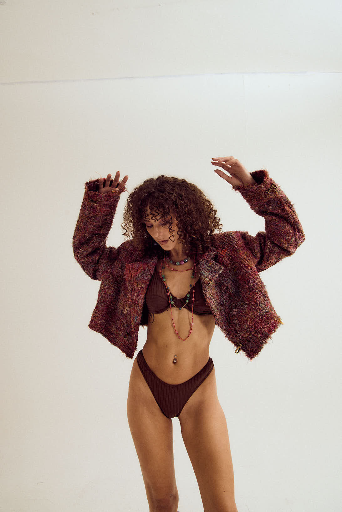A handcrafted anti-fit jacket created from carefully collected waste thread scraps, transformed into a beautifully textured surface that celebrates conscious design and thoughtful craftsmanship. The relaxed silhouette makes it an easy layering piece, distinctive, and timeless.