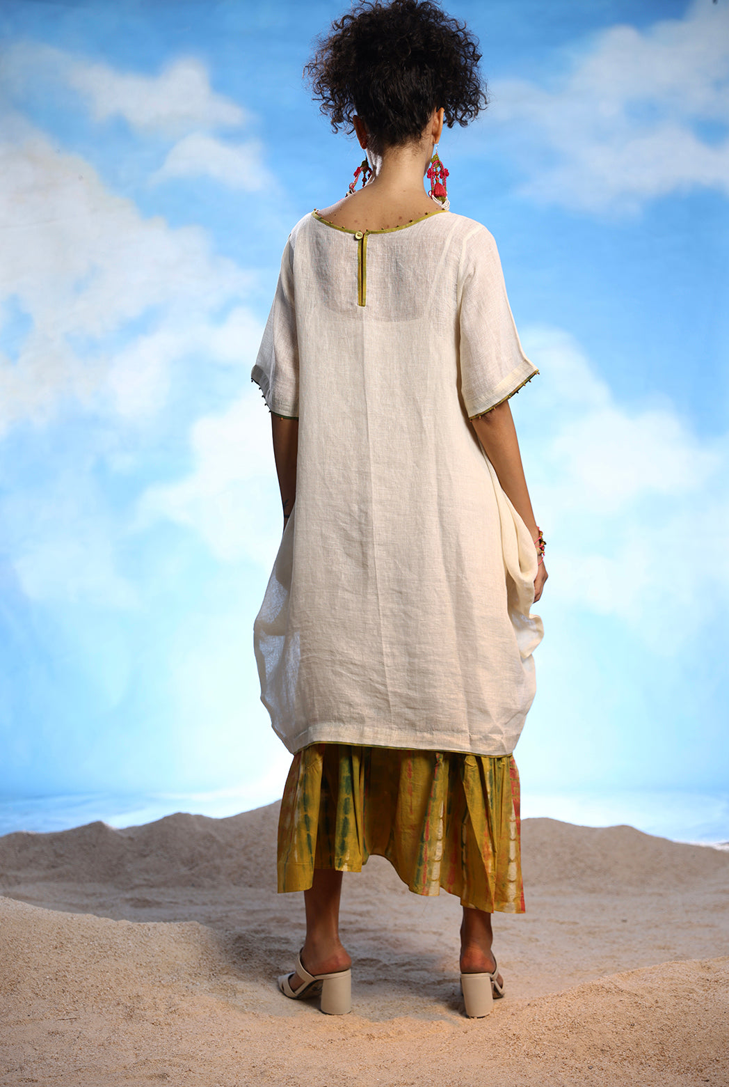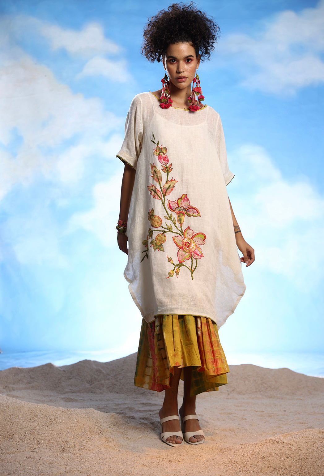 Elevate your style with capisvirleo's Godiva, a dress from the palila spring summer collection. This emb linen boho tunic dress + long frill inner showcases the beauty of ivory/yellow hues, expertly crafted from linen/cotton for comfort and style. The design features round neck, creating a distinctive silhouette. The garment is adorned with patchwork/handwork that adds artisanal charm. Designed with a relaxed fit, it offers both comfort and elegance for various occasions. This versatile 2-piece set provides multiple styling options for versatile styling. Pair with statement accessories and sandals for a complete look . Each detail reflects capisvirleo's commitment to quality craftsmanship and elegance.
